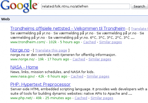 Ja, er vel fort mange av de samme treffene på folk.ntnu.no.. Må få meg eget domene skjønner jeg 😉