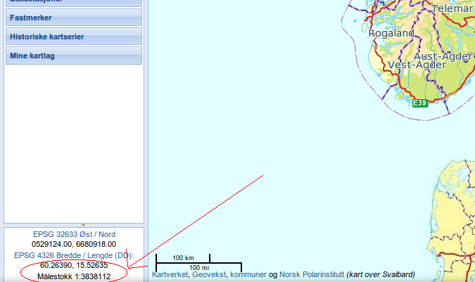 Look at the screenshot above. (“Målestokk” is scale in Norwegian). If we apply the concept of scale we know from printed maps the following principle could be used:
